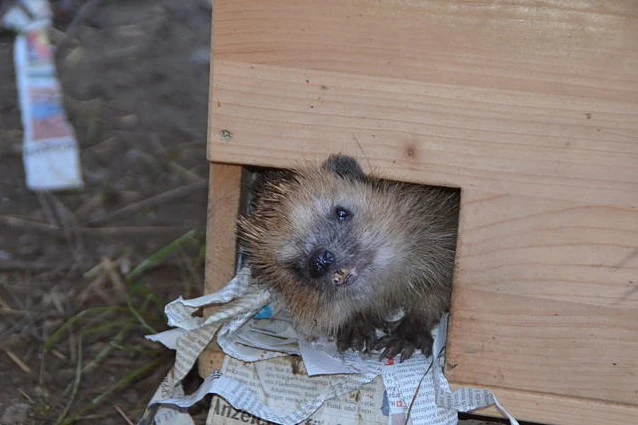 You can see below the first hedgehog houses which were inhabited by their residents.
